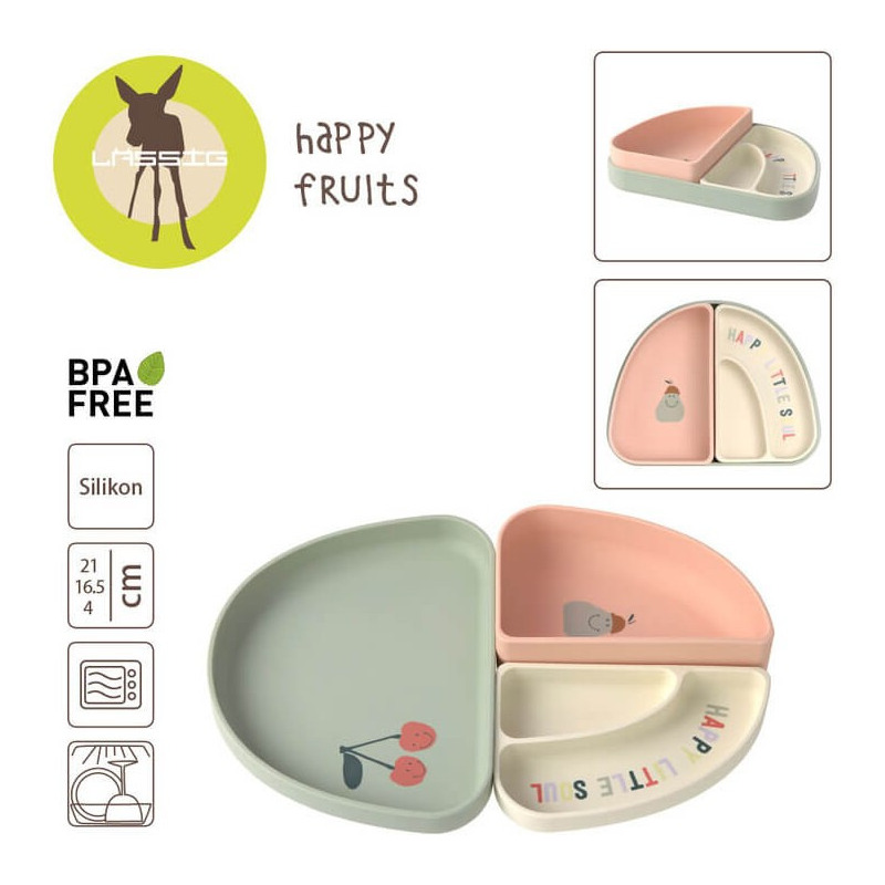 Zestaw silikonowych naczyń 3 el. Happy Fruit Cherry Lassig 6m+