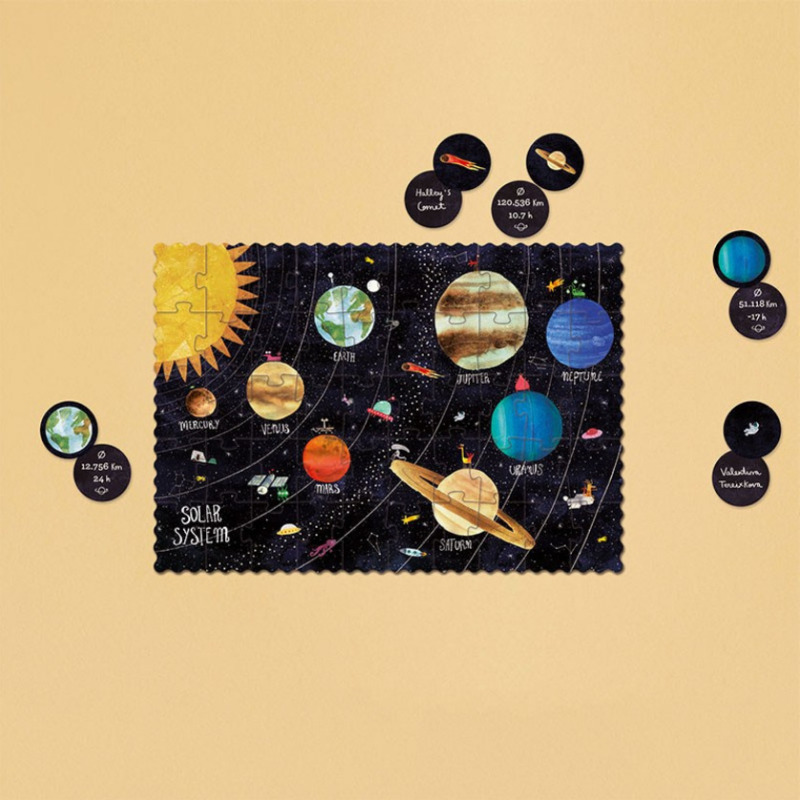 Złóż 50-elementową układankę, a potem odkryj fascynujące informacje o planetach Układu Słonecznego – od Jowisza po Marsa, od Urana po Saturn. Jakie mają średnice? Ile trwa dzień na każdej z nich? Ta edukacyjna zabawka pozwala na naukę o kosmosie i odkrywanie ciekawostek związanych z planetami i przestrzenią kosmiczną.
