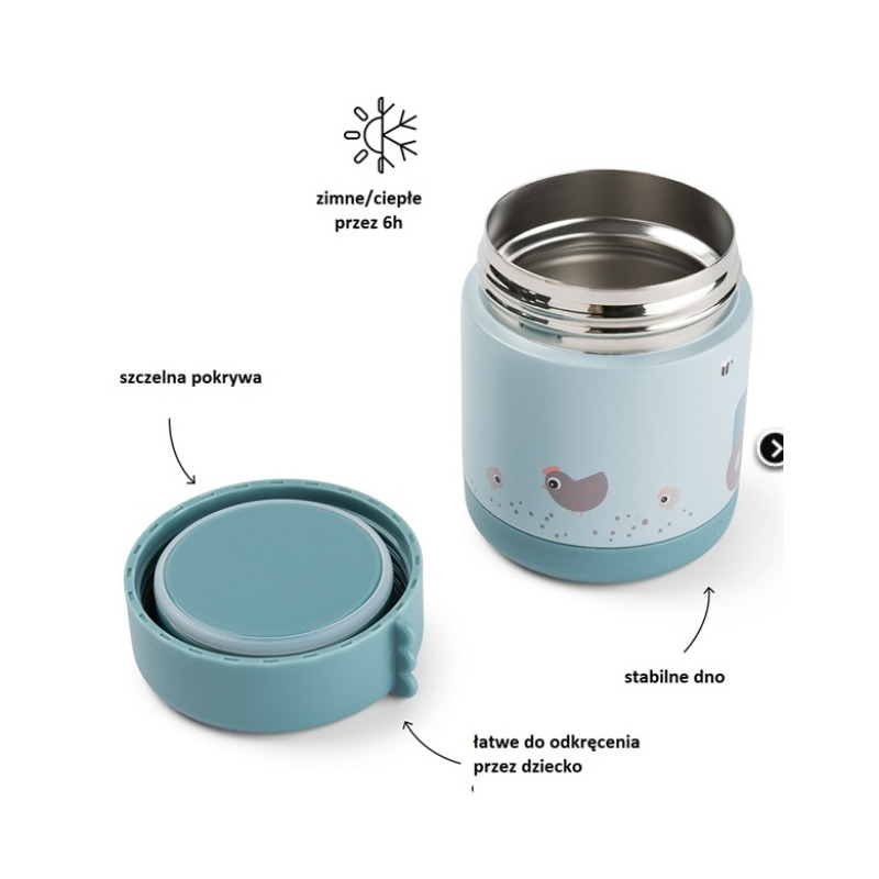 - utrzymuje pokarm ciepły lub zimny do 6 godzin, ze stopniową zmianą temperatury w czasie,