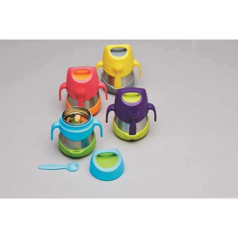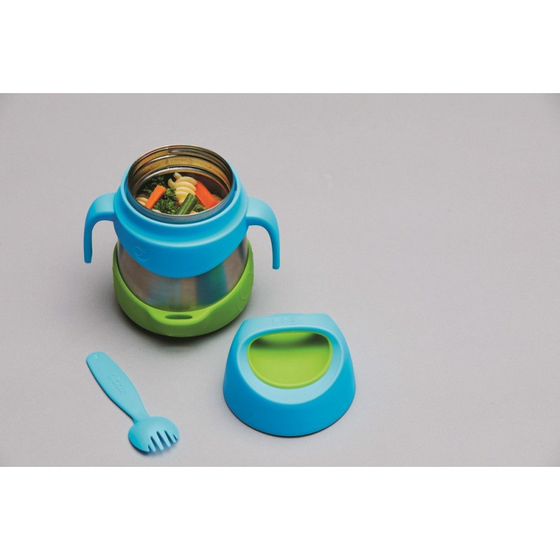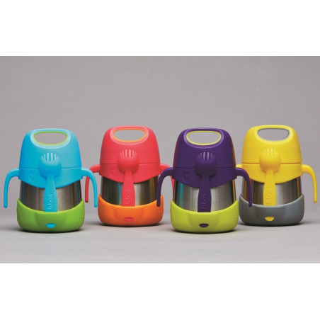 - do termosu dołączono silikonowy, bezpieczny widelczyk, który mocowany jest do silikonowej podstawy