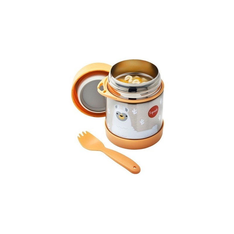 Dołączony do zestawu łyżeczko - widelec jest praktyczny i bezpieczny dla dzieci.