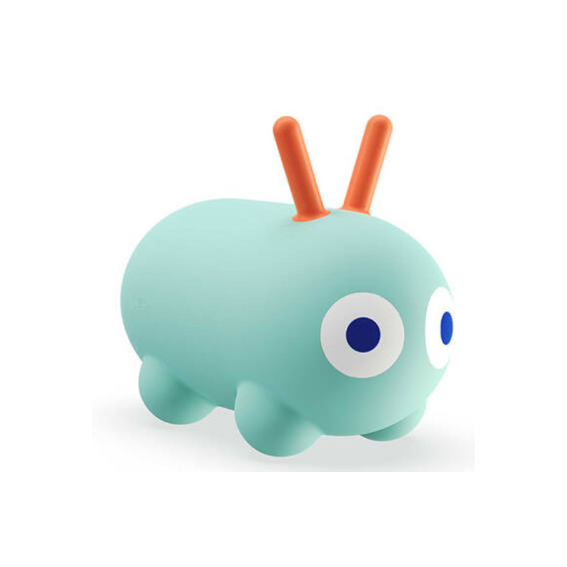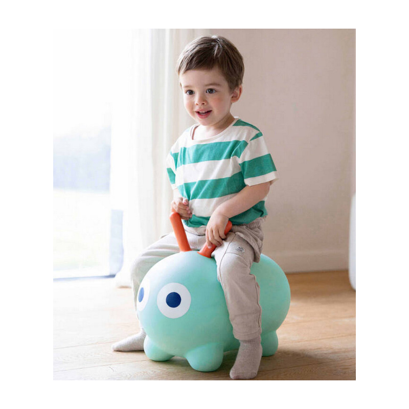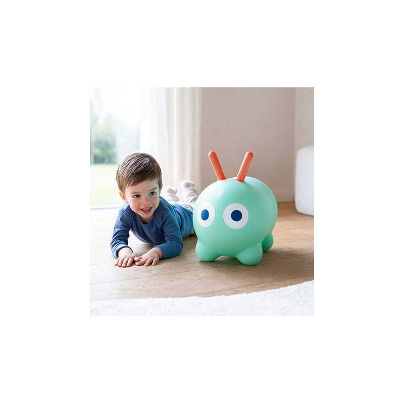 Łatwy do napompowania (pompka w zestawie) i transportu. Skoczek przeznaczony jest dla dzieci od 1. roku życia (siedzisko na wysokości 25 cm). Wykonany został z bardzo wytrzymałego winylu, zachwyca niebanalnym designem i kolorystyką. Ma kształt wydłużonej (idealnej do siedzenia) uroczej gąsienicy z długimi czułkami, które mogą służyć za poręczne uchwyty podczas zabawy oraz piękne, intensywne kolory: jest miętowy, a jego czułka – koralowe.