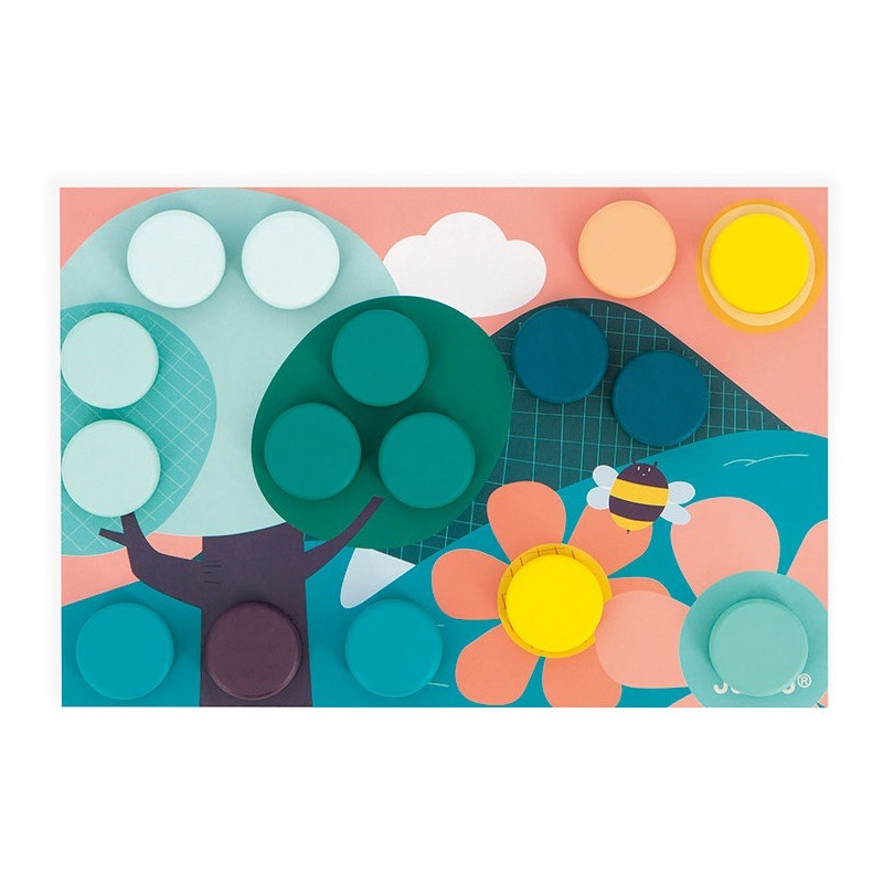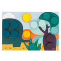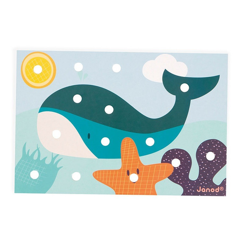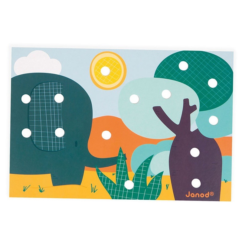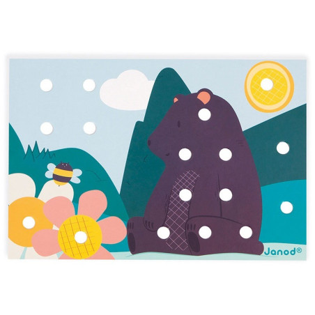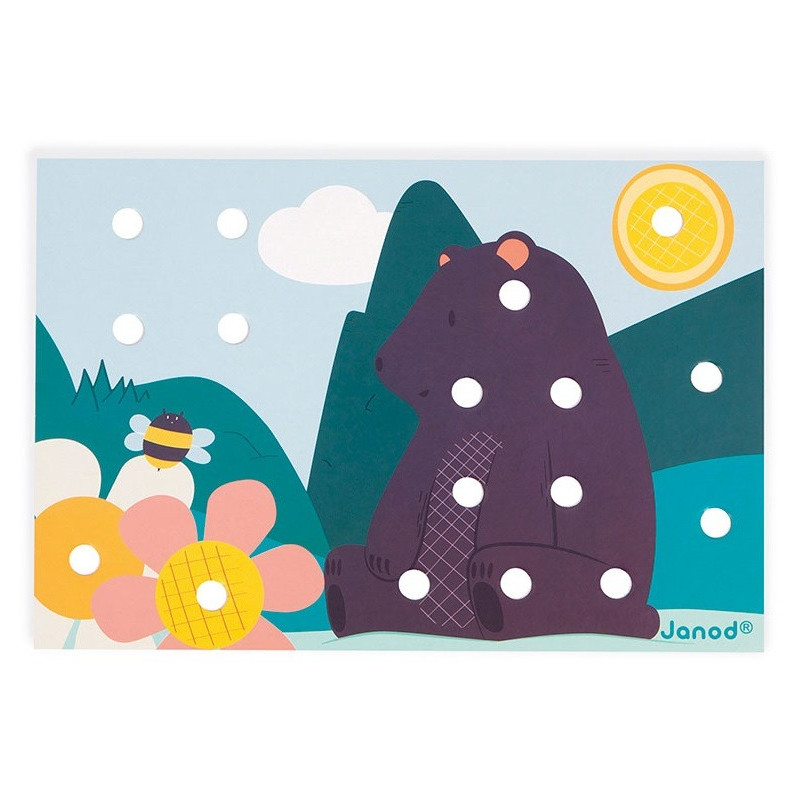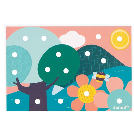 Zestaw składa się z 6 plansz z grubego kartonu z wyciętymi otworami,