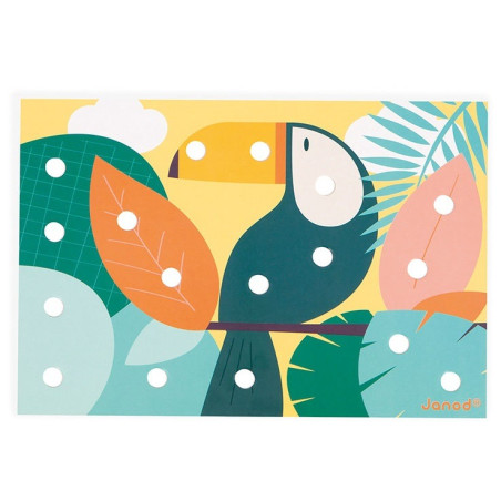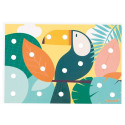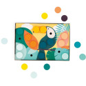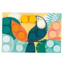 Obrazki mają uniwersalne kolory i tematykę (ciekawe miejsca i zwierzęta, np. tukan w dżungli,