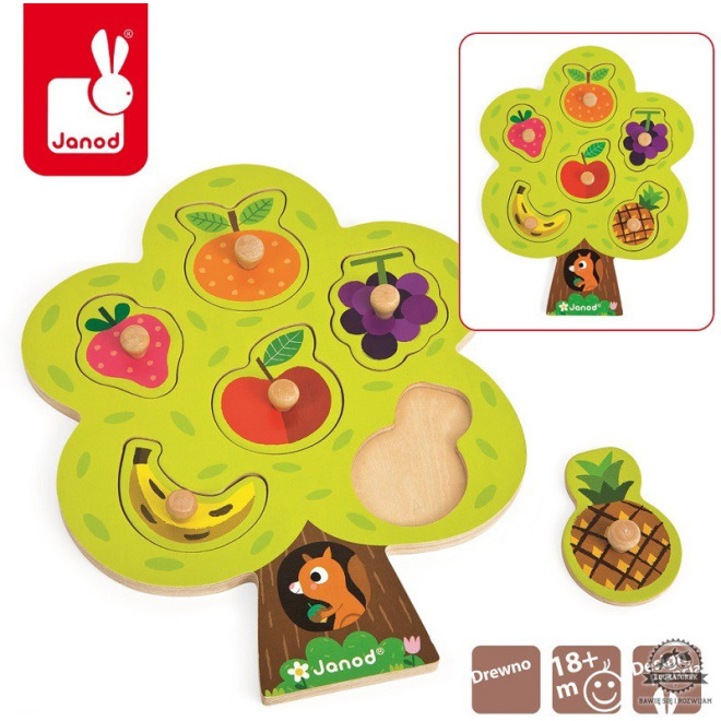 DRZEWO drewniana układanka z uchwytami owoce Janod 18m+