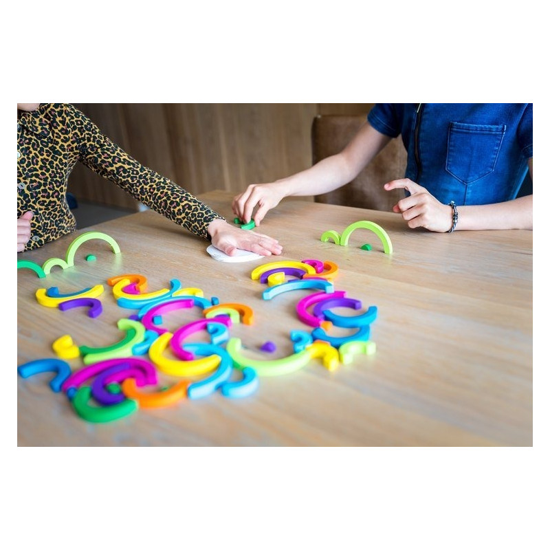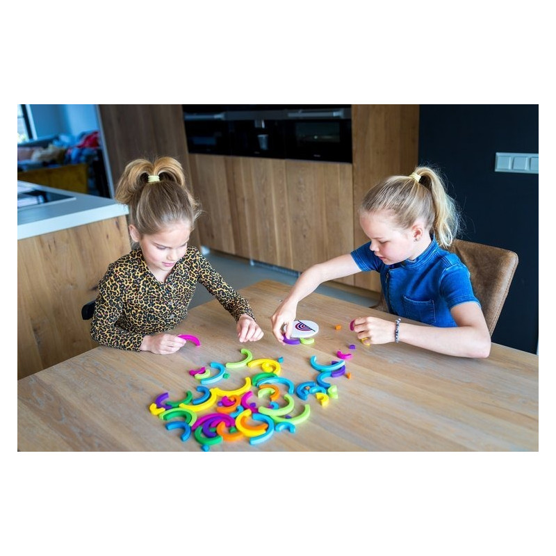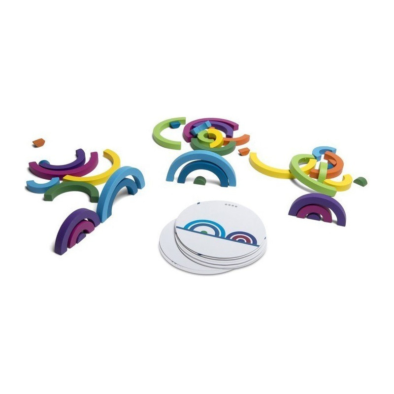 Każdy z graczy stara się szybko ułożyć elementy tęczy zgodnie z rysunkiem na odkrytej karcie.