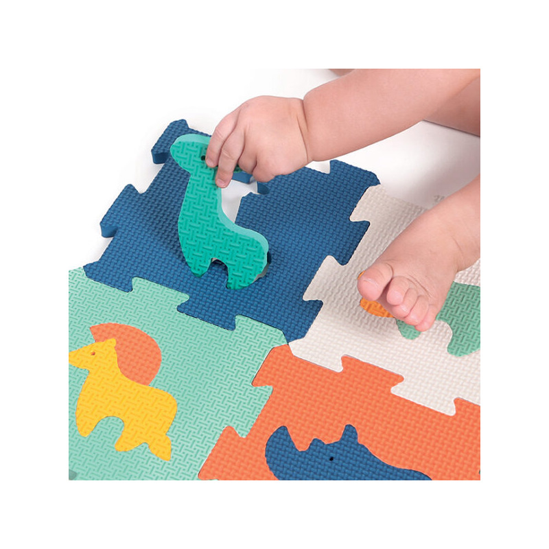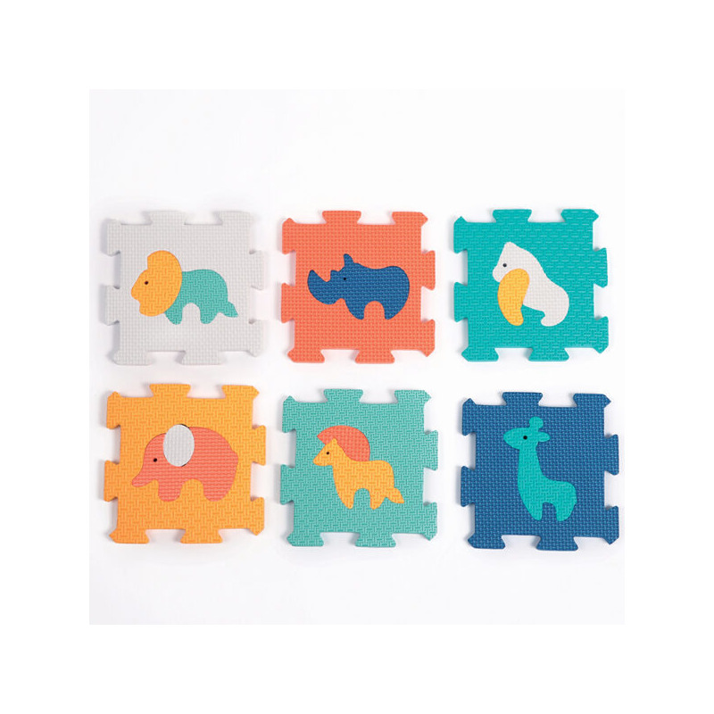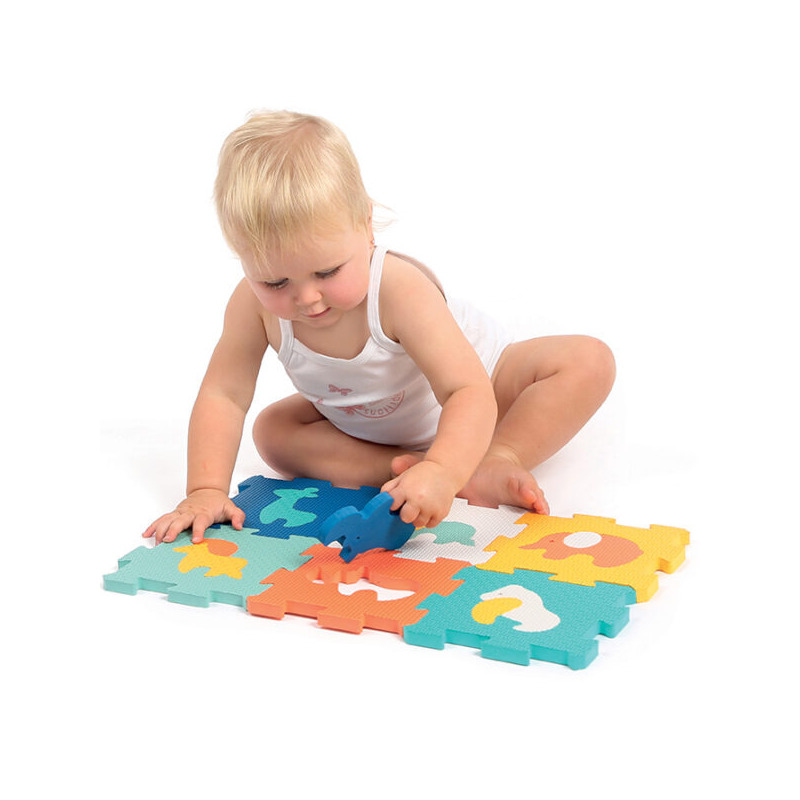 Lekkie płytki z pianki, a w każdej z nich zwierzęca postać do wyjmowania, dopasowywania, a nawet ustawiania i wymyślania historii.