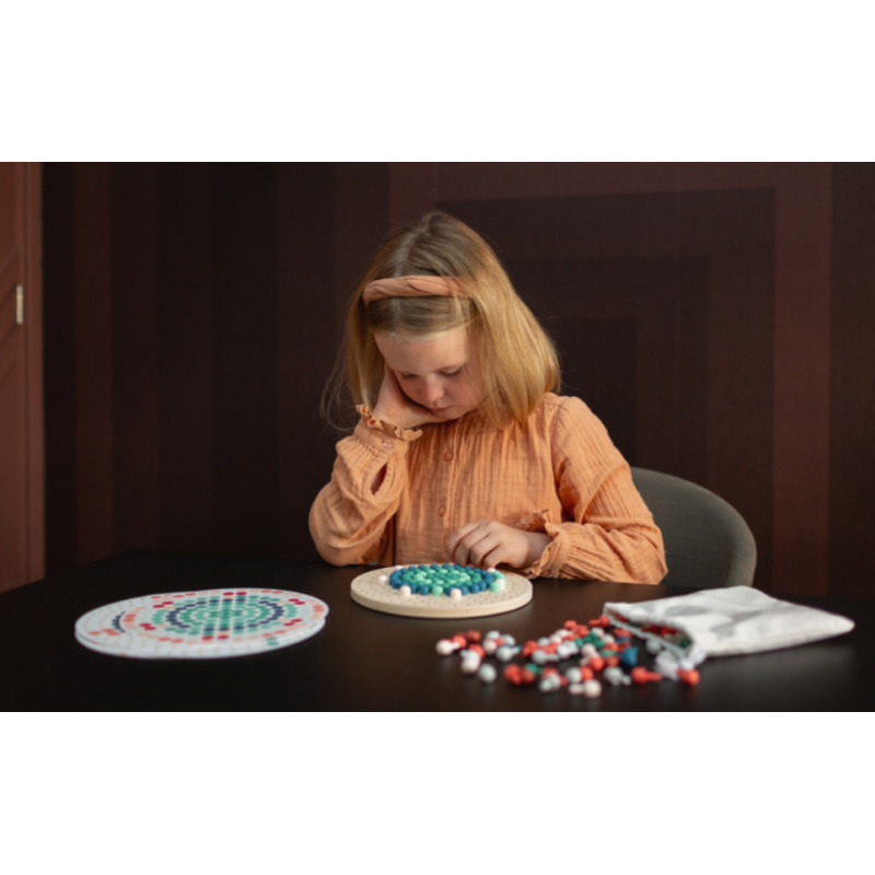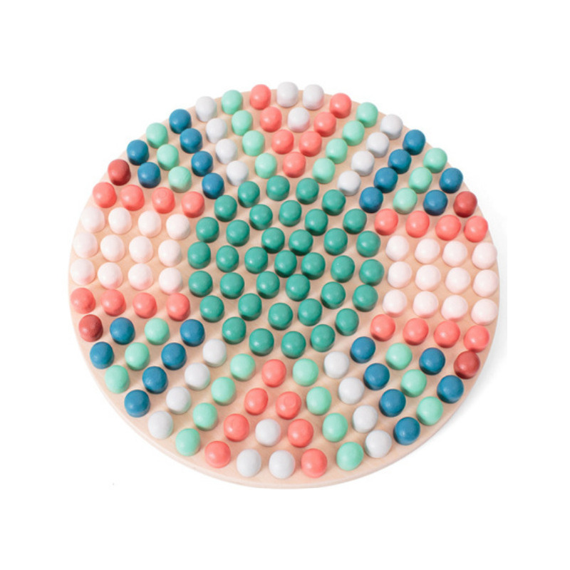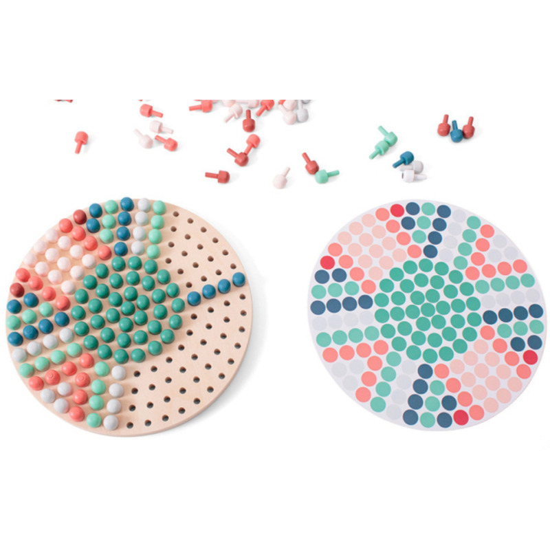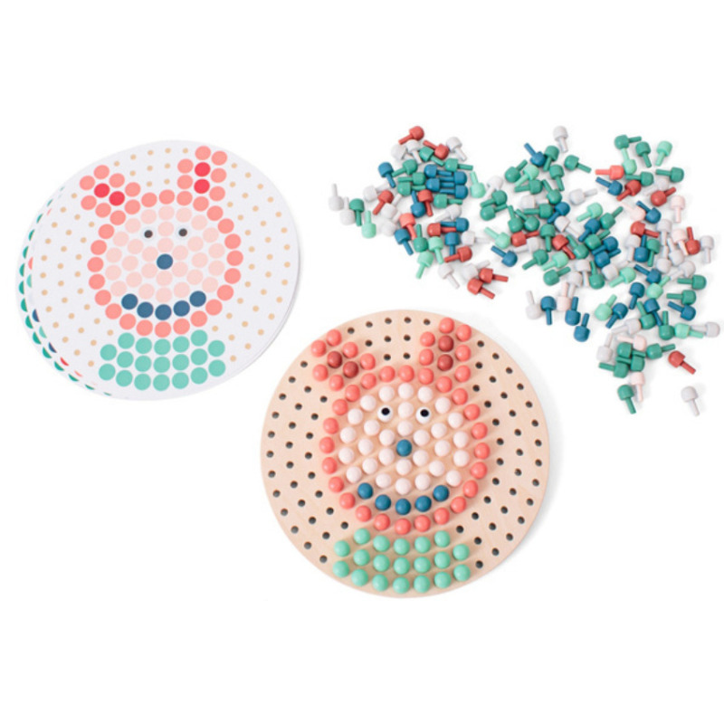 Układanka mozaika z drewnianymi pinezkami to wspaniała zabawa i świetny sposób na rozwijanie zdolności manualnych, zręcznościowych, ćwiczenie koordynacji wzrokowo-ruchowej oraz praktykowanie zdolności logicznego myślenia. Z zabawką dzieci ćwiczą również cierpliwość i koncentrację.