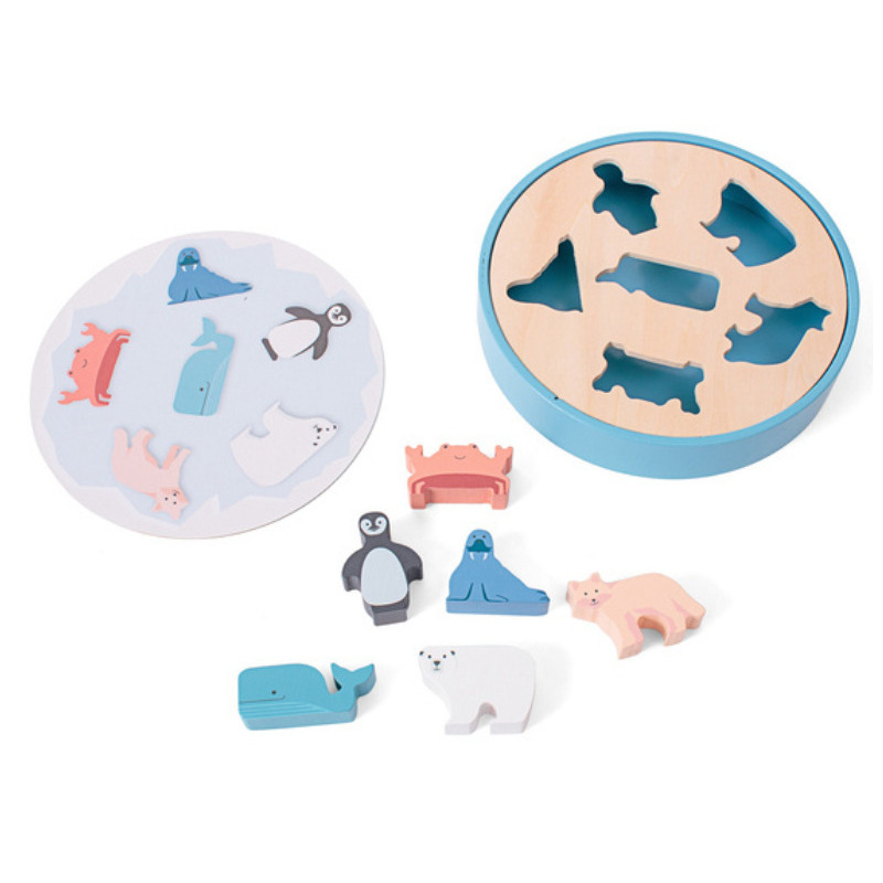 ZWIERZĘTA ARKTYKI drewniana układanka sorter z figurkami BS Toys 18m+