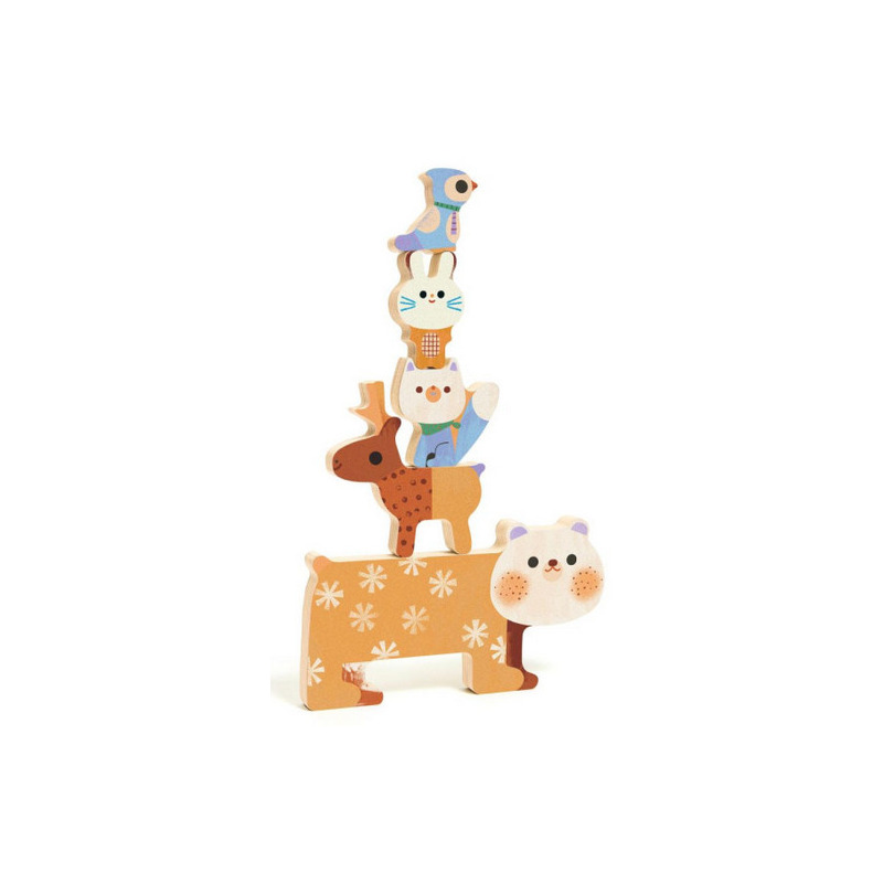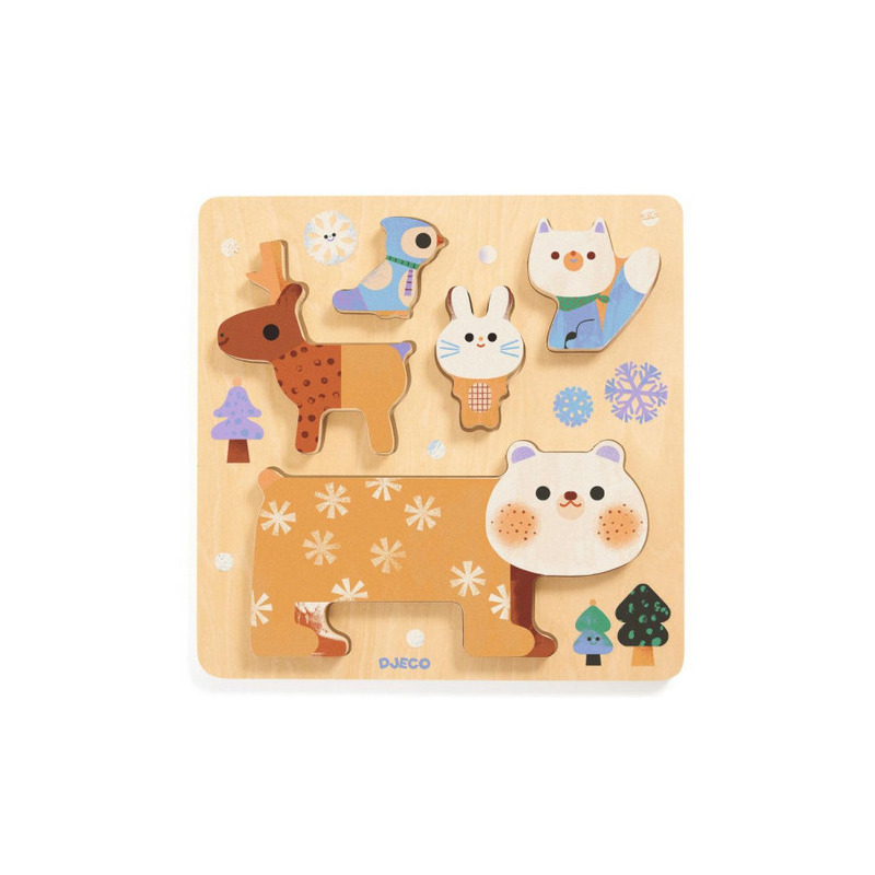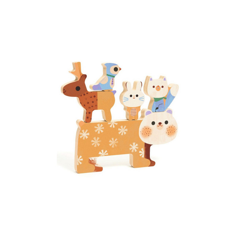 ZWIERZĄTKA ZIMĄ drewniana układanka balansująca dopasowanka 3D Djeco 12m+
