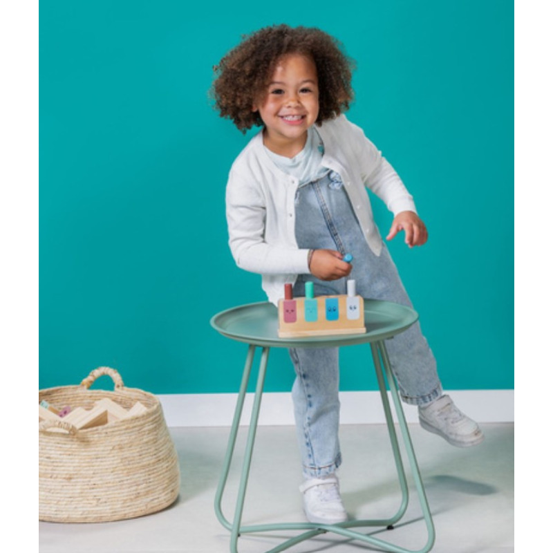 Drewniana gra zręcznościowa Pop-up polega na naciśnięciu kolorowego patyczka, który następnie w zależności od siły nacisku podskakuje, lub wyskakuje. Duże i wygodne elementy są dostosowane dla małych rączek dziecka.