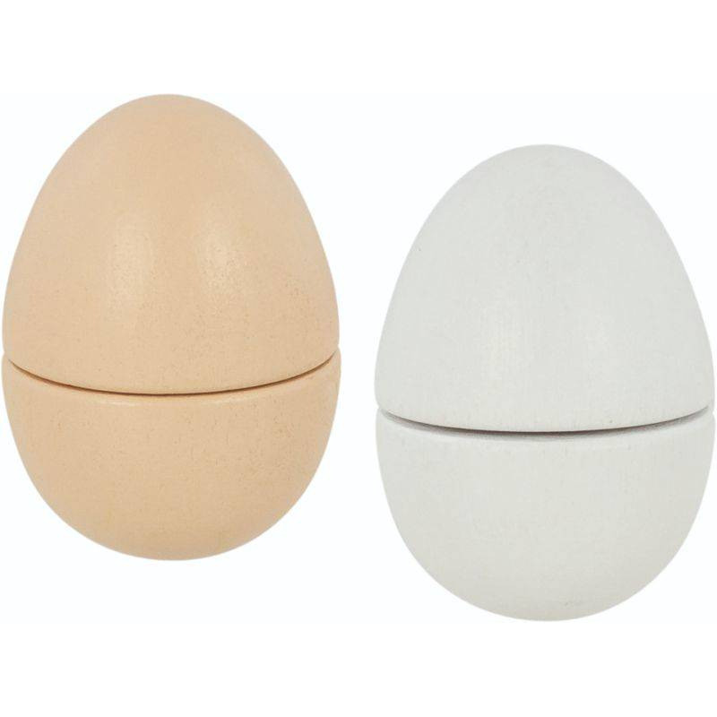 - 6 drewnianych, dwuczęściowych jajek połączonych na rzep