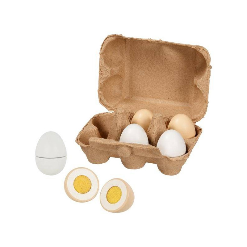 Zestaw drewnianych jajek do krojenia w kartonowej wytłaczance