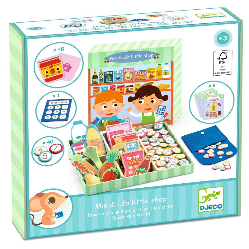 Zestaw do odgrywania roli sprzedawcy lub klienta w małym sklepiku Mii i Léo.