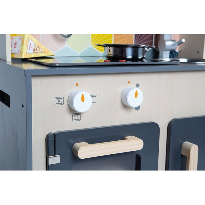 MOZAIKA duża drewniana kuchnia z dźwiękiem, światłem LED i 6 akcesoriami