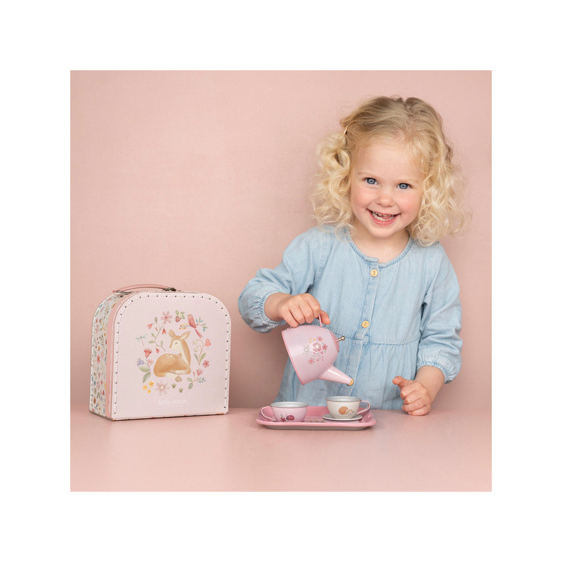 Metalowy zestaw do herbatki lub kawy z kolekcji Fairy Garden, zapakowany w elegancką walizeczkę jest doskonały do zabawy w odgrywanie ról. Idealnie sprawdzi się jako prezent.