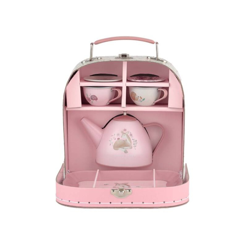 SERWIS DO HERBATY W WALIZECZCE metalowy zabawa w dom 6 el. Fairy Garden