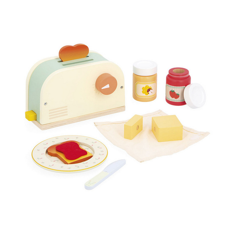 DREWNIANY TOSTER zestaw śniadaniowy z tosterem i 12 akcesoriami Shiny Grandma 3+