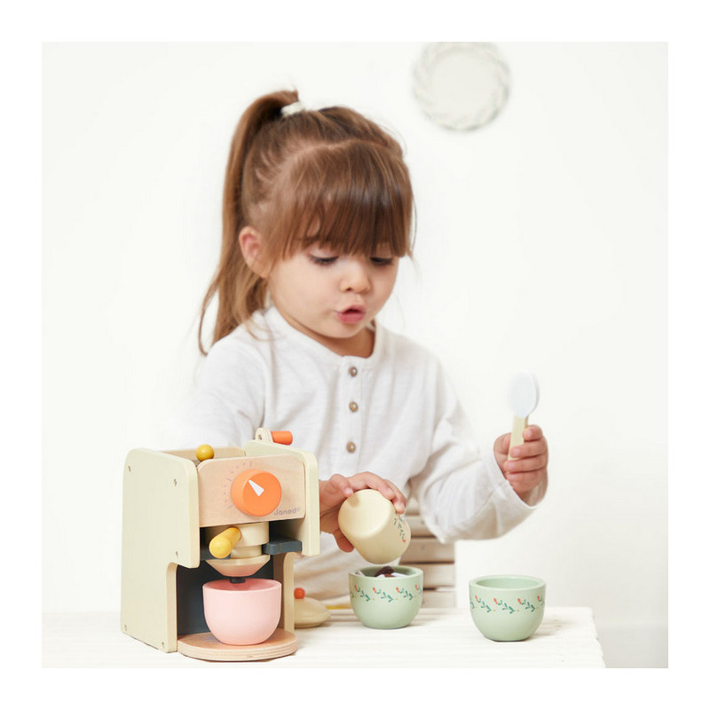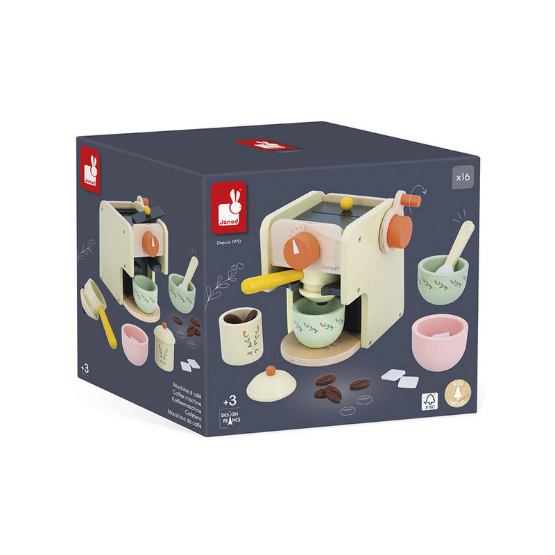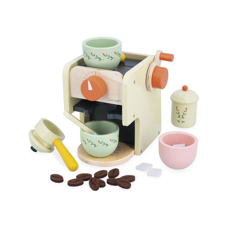 Drewniany ekspres ciśnieniowy do kawy z kolekcji Shiny Grandma francuskiej marki JANOD pozwoli dziecku wcielić się w rolę profesjonalnego baristy. Idealnie sprawdzi się jako samodzielna zabawka lub jako uzupełnienie dziecięcej kuchni, inspirując do kreatywnej zabawy w przygotowywanie kawy. Zestaw zawiera drewniany ekspres do kawy z pokrętłami i pojemnikiem na ziarna oraz akcesoria.