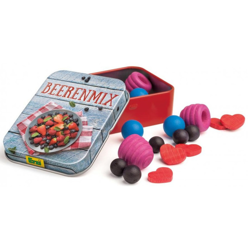 DREWNIANE OWOCE LEŚNE w puszce do zabawy w kuchnię i sklep Erzi 3+
