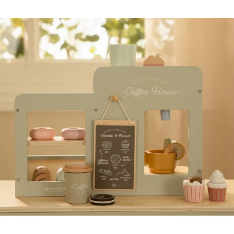 DREWNIANA KAWIARENKA zabawa w dom, kuchnię i gotowanie FSC Little Dutch 3+