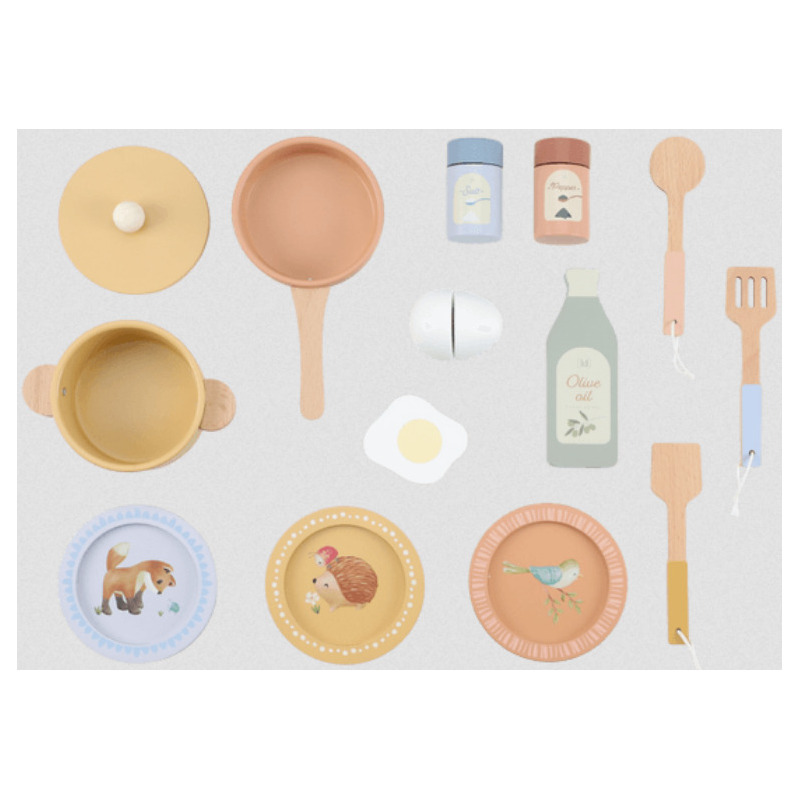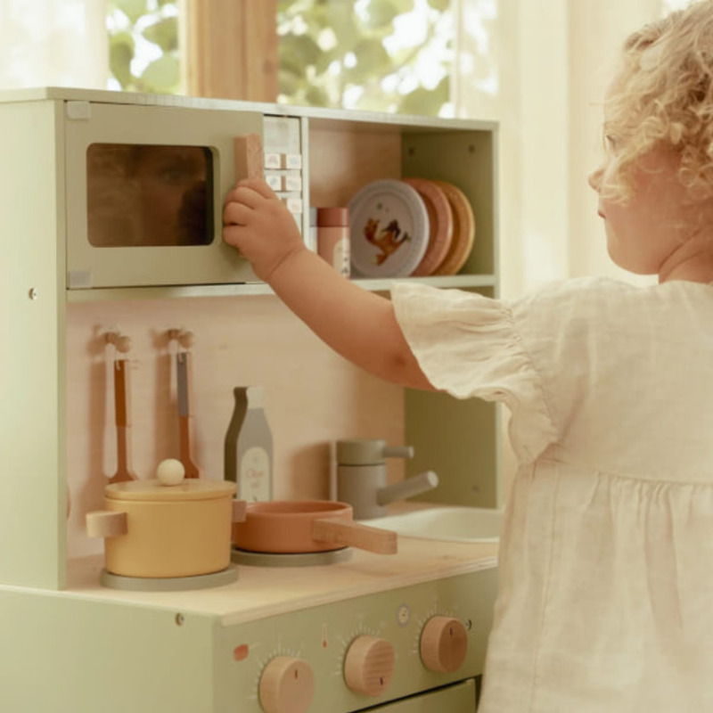 Co dziś gotuje Twój mały szef kuchni? Ta urocza drewniana kuchnia Little Dutch spełni marzenia każdego dziecka, które uwielbia naśladować dorosłych. Zestaw zawiera niemal wszystko, co potrzebne do przygotowania prawdziwej uczty dla misiów, lalek czy całej rodziny!