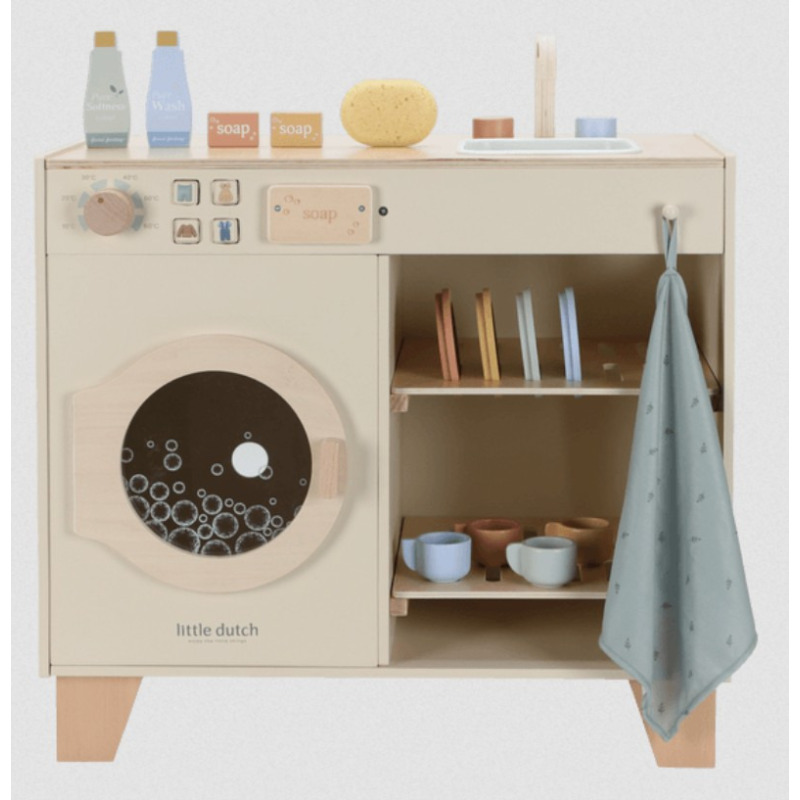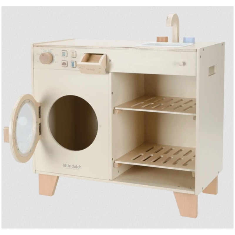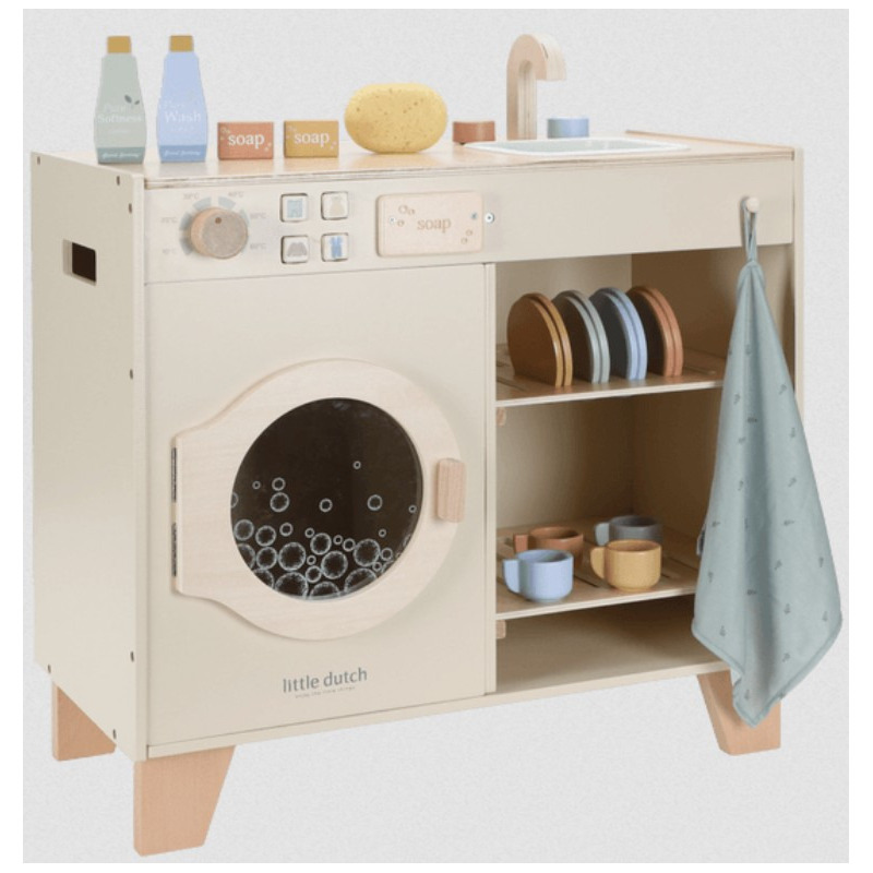 Drewniana pralka i zlew marki Little Dutch to wyjątkowy zestaw do zabawy w odgrywanie ról, który zamienia codzienne obowiązki w fascynującą przygodę. Dzieci mogą prać, zmywać i porządkować w swoim małym domku, rozwijając przy tym wyobraźnię, kreatywność i poczucie odpowiedzialności.