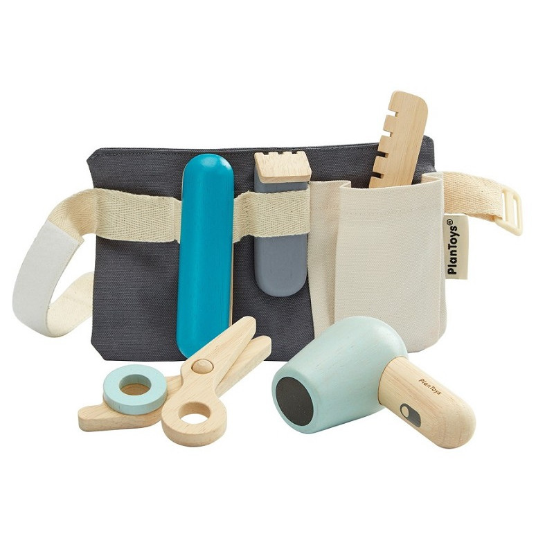 SALON FRYZJERSKI zestaw drewnianych akcesoriów