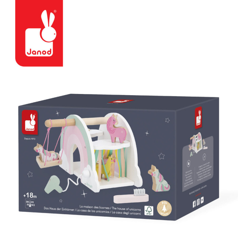 Drewniany domek jednorożców z 5 akcesoriami JEDNOROŻCE Janod 18m+
