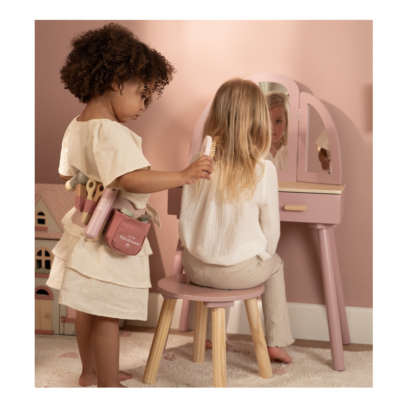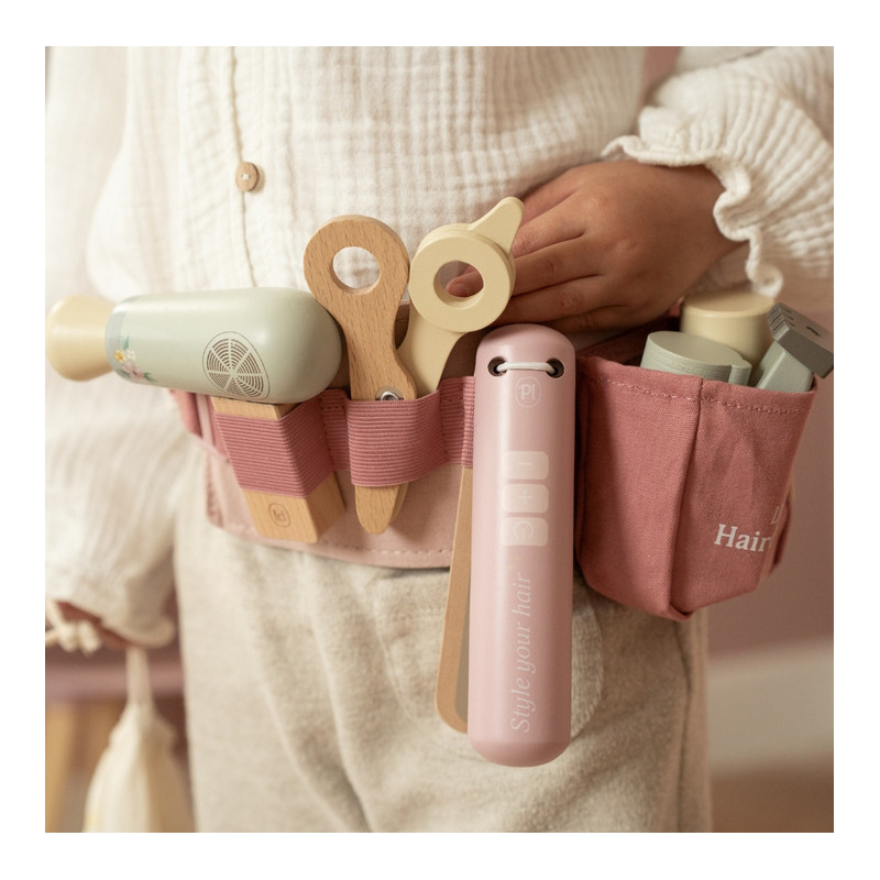 ZESTAW FRYZJERSKI drewniane akcesoria z pasem zabawa w dorosłych FSC Little Dutch 3+