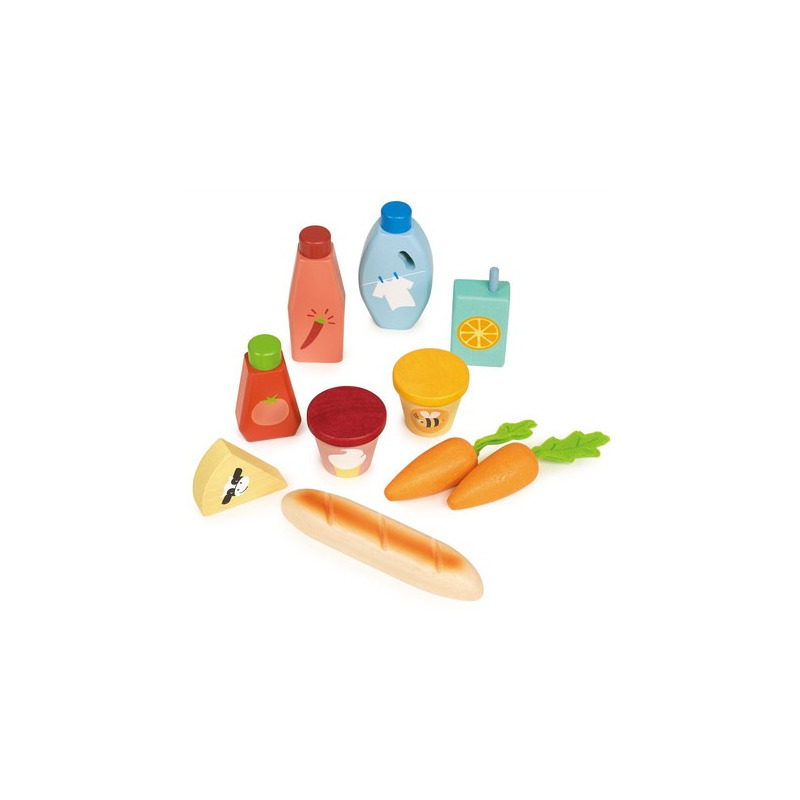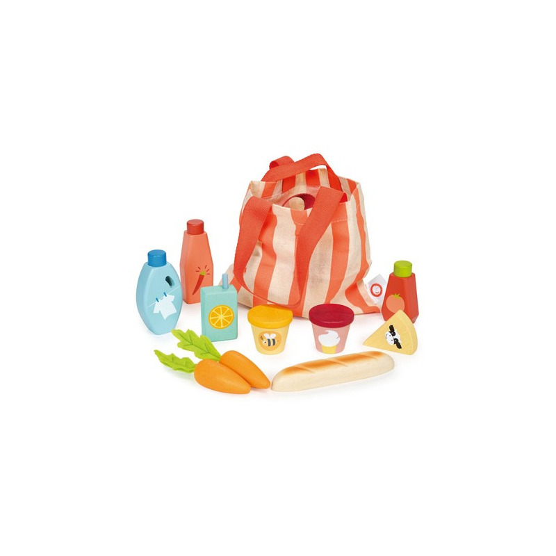 Z taka torbą zakupy staną się przyjemnością! Oprócz materiałowej torby zakupowej zestaw zawiera różne produkty spożywcze, niezbędne do przygotowania posiłku dla lalek, czy misiów. Świetnie sprawdzi się do zabawy w kuchnię i sklep!