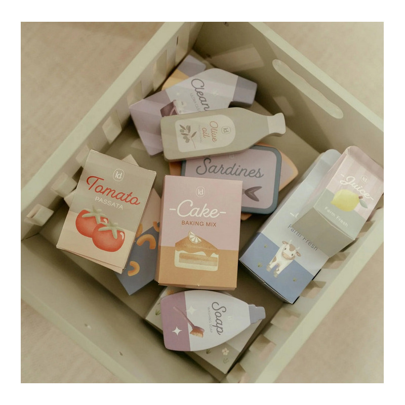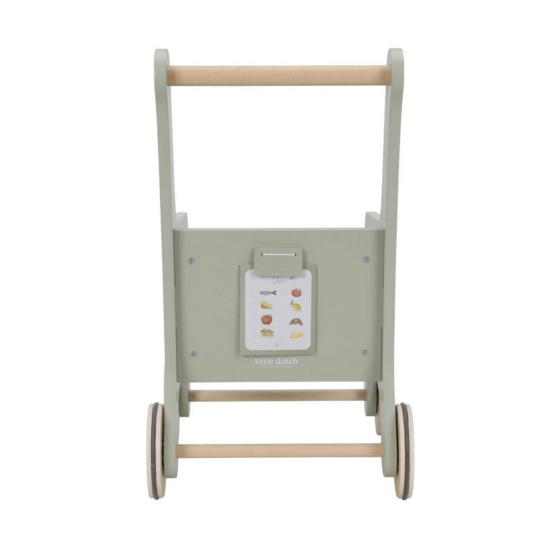 Wyrusz na małe zakupy z wielką frajdą! Drewniany wózek na zakupy od Little Dutch to doskonała propozycja dla dzieci, które uwielbiają naśladować dorosłych i bawić się w sklep. Stabilna konstrukcja wykonana z certyfikowanego drewna FSC gwarantuje bezpieczeństwo i trwałość, a dołączona bawełniana siateczka sprawia, że zabawa staje się jeszcze bardziej realistyczna. W zestawie znajdziesz urocze, drewniane i kartonowe produkty spożywcze – masło, sardynki, mleko i wiele innych „zakupów”, które można zapakować do wózka lub siateczki.