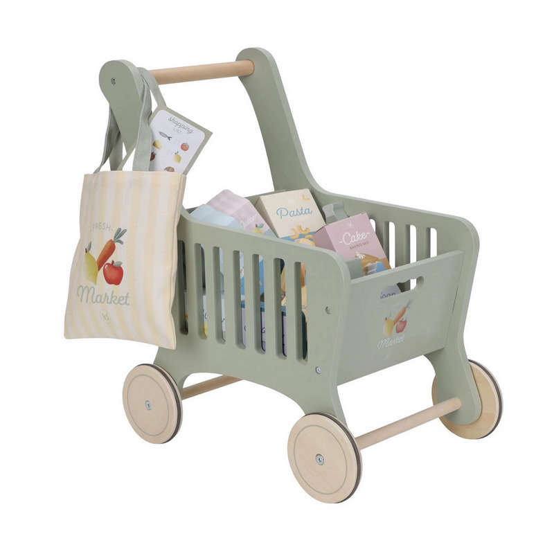 DREWNIANY WÓZEK na zakupy do zabawy w sklep z akcesoriami FSC Little Dutch 3+