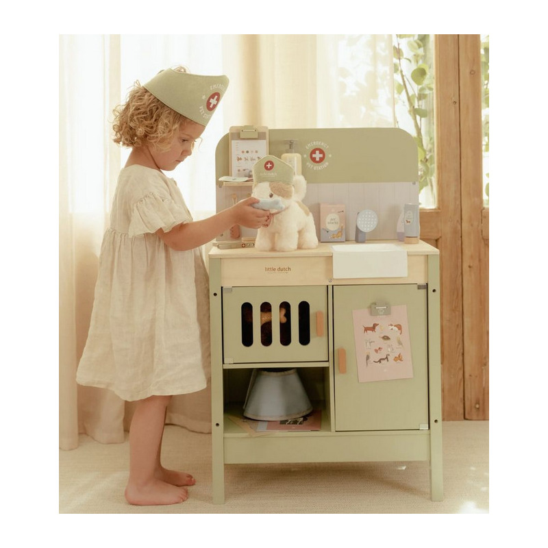Drewniany gabinet weterynaryjny Little Dutch to zestaw, który pozwoli dziecku wcielić się w rolę prawdziwego weterynarza. To nie tylko świetna zabawa, ale także nauka empatii, odpowiedzialności i troski o innych.