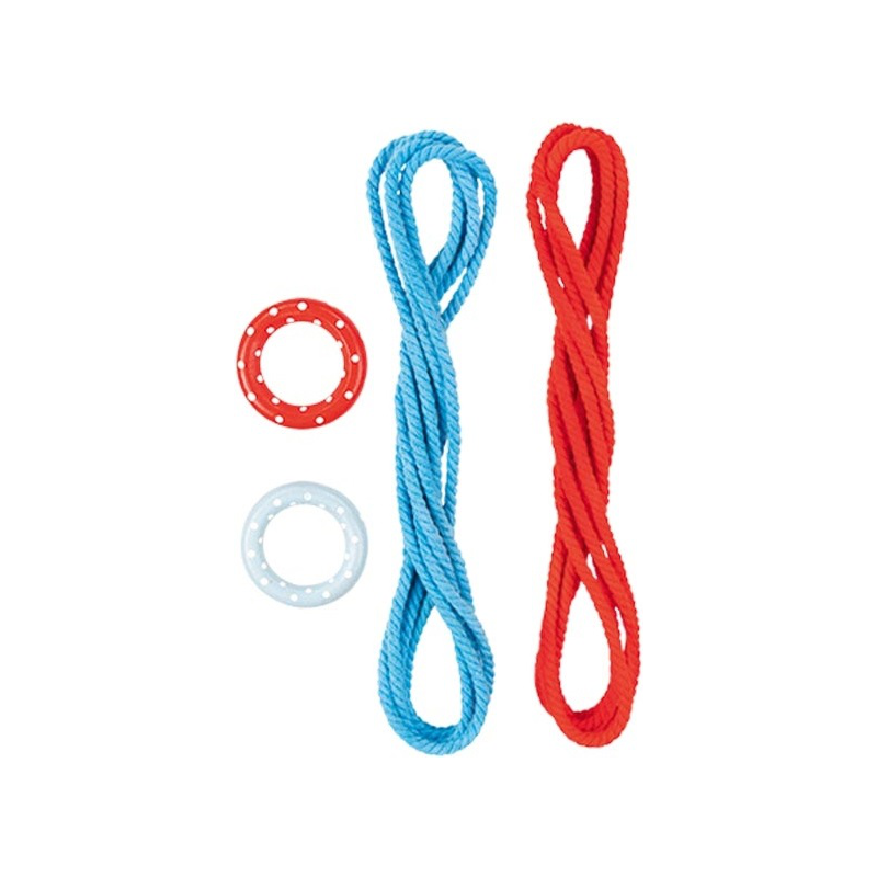 - 2 sznurki, 2 pierścienie-krążki, instrukcję obrazkową,