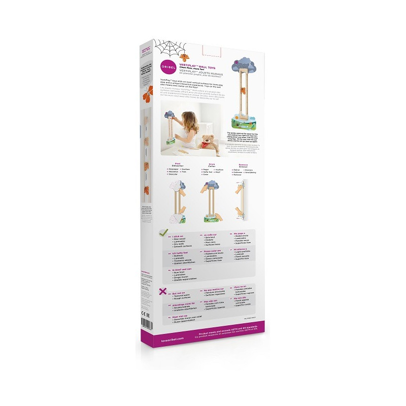 Odklej ochronną warstwę naklejki i przyłóż zabawkę do ściany/drzwi. Mocno przyciśnij i wyrównaj.