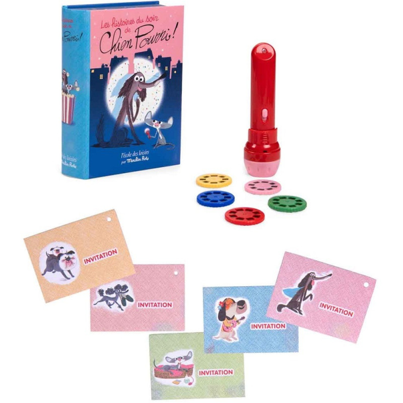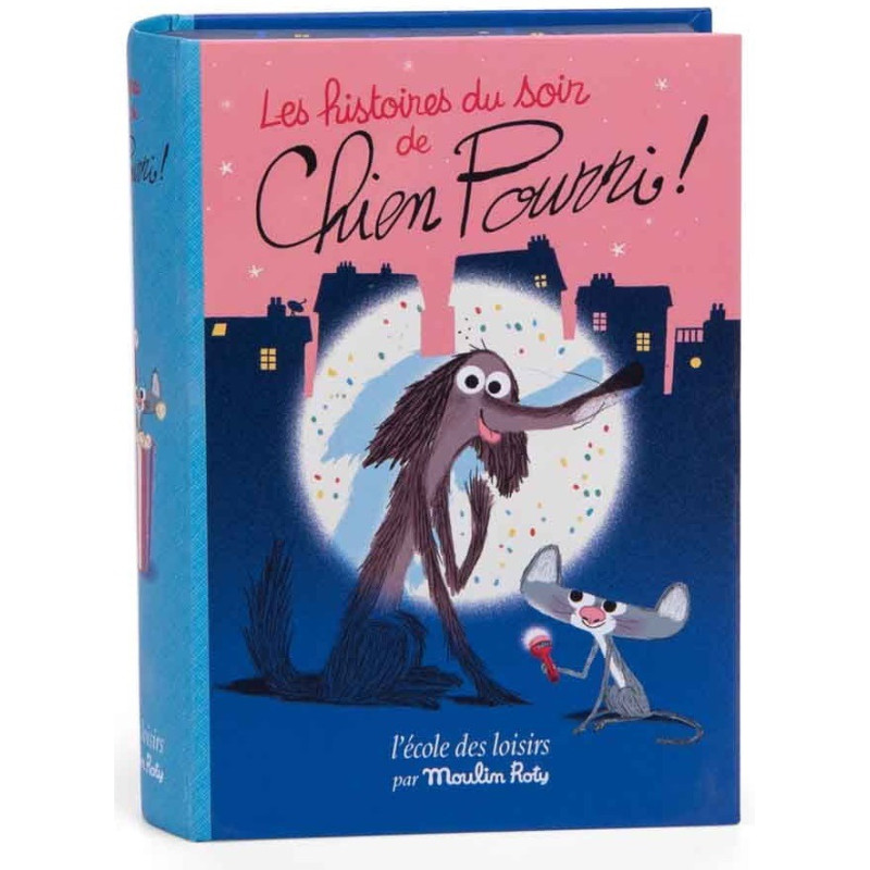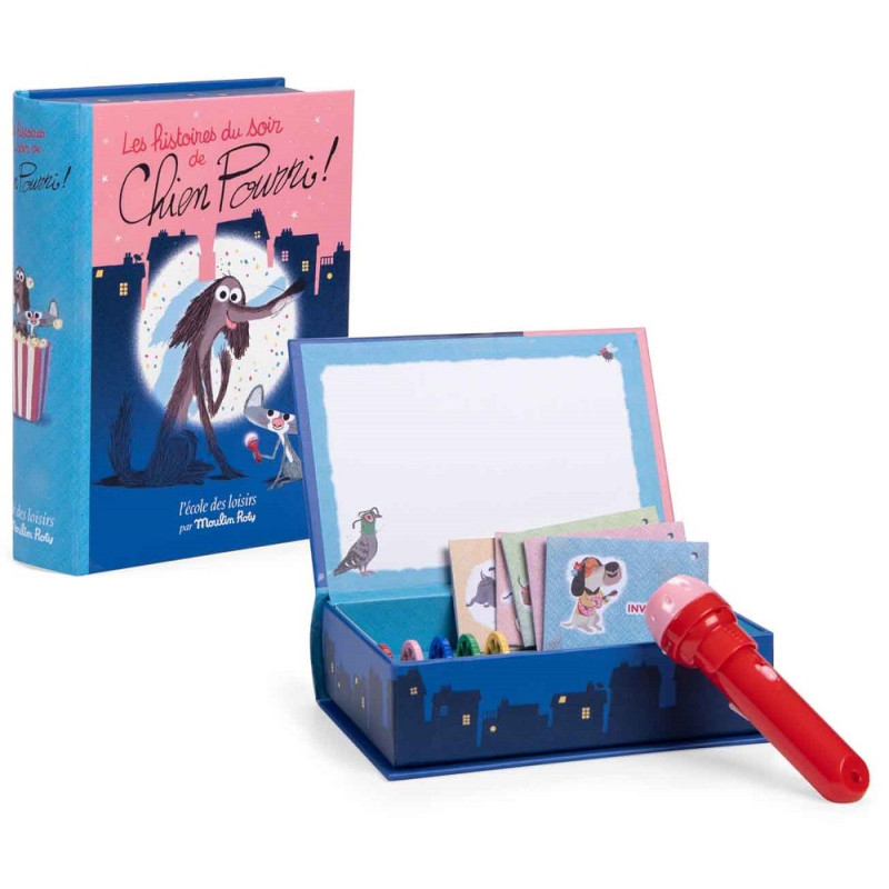 ukrywa lampkę do projekcji opowieści o przygodach psa Pourri.