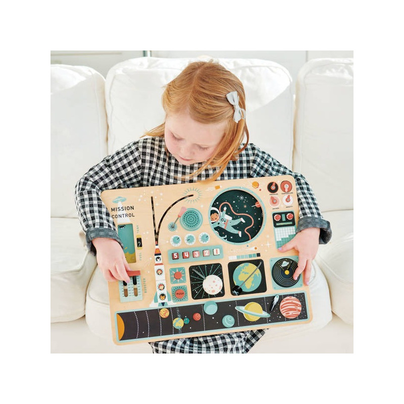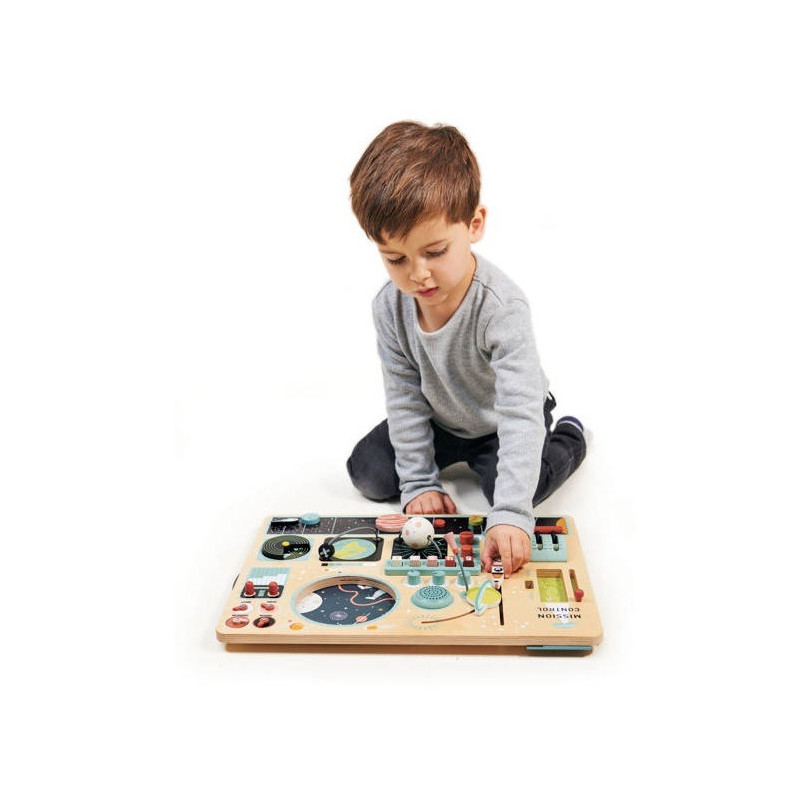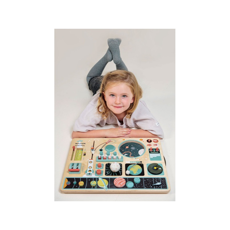 Kosmiczna tablica manipulacyjna będzie idealnym dopełnieniem pozostałych kosmicznych zabawek marki Tender Leaf Toys.