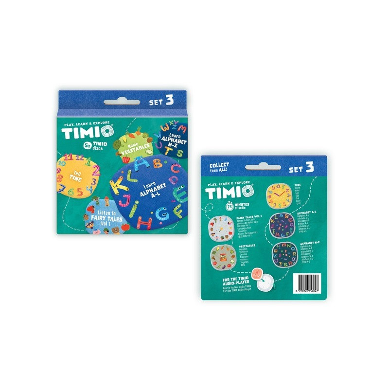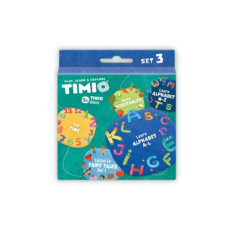 Zbierz wszystkie 4 dodatkowe zestawy dysków TIMIO, aby poszerzyć horyzonty Twojego dziecka
