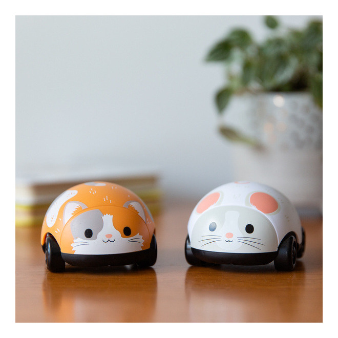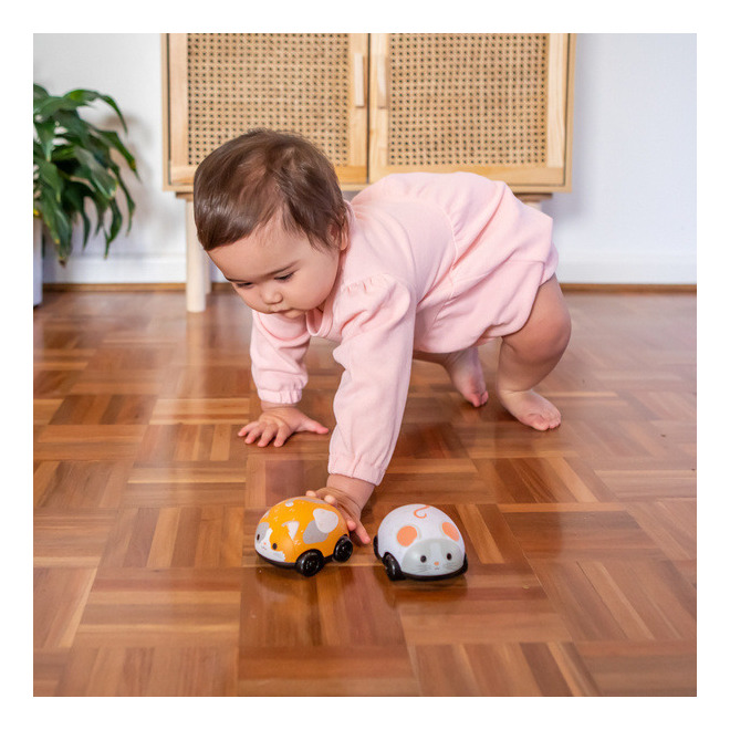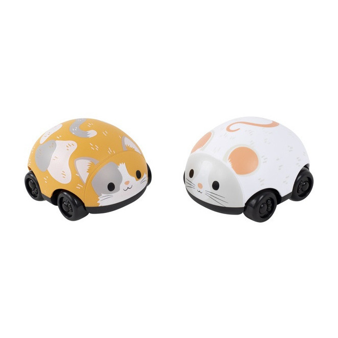 Te niewymagające baterii urocze pojazdy do zabawy dla maluszków mają idealny rozmiar dla małych rączek i poruszają się tam i z powrotem po podłodze po delikatnym naciągnięciu. Świetne do rozwijania umiejętności motorycznych u niemowląt i małych dzieci uczących się raczkować lub chodzić. Kot i Mysz mają opływowe kształty, kompaktowy rozmiar i są niezwykle zajmującą zabawką.