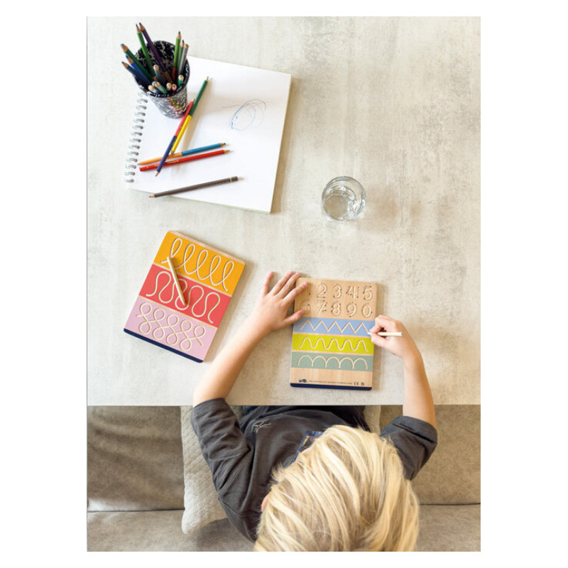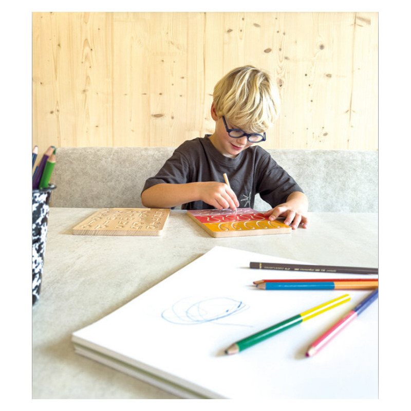 Tablice oferują możliwość ćwiczenia liter, cyfr oraz podstawowych kształtów dzięki wyżłobieniom,