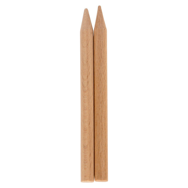 które prowadzą rękę dziecka. Dołączone drewniane rysiki sprawiają, że nauka pisania przypomina