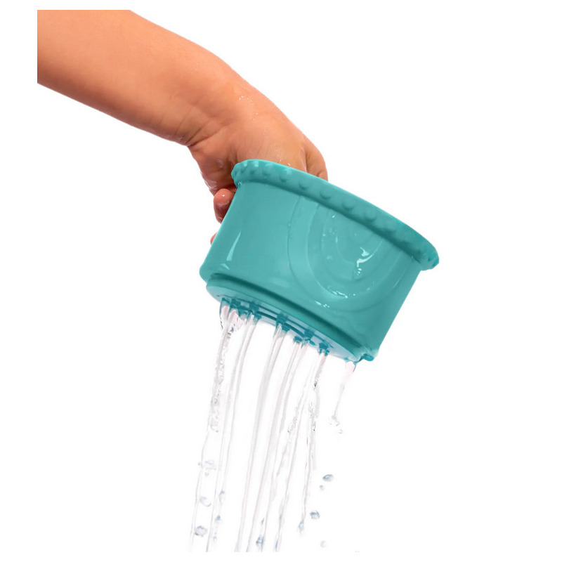 - elastyczne kubeczki – do budowania wież lub wkładania jeden w drugi, większość z urozmaiconymi otworami w dnie – idealne do zabawy w kąpieli.