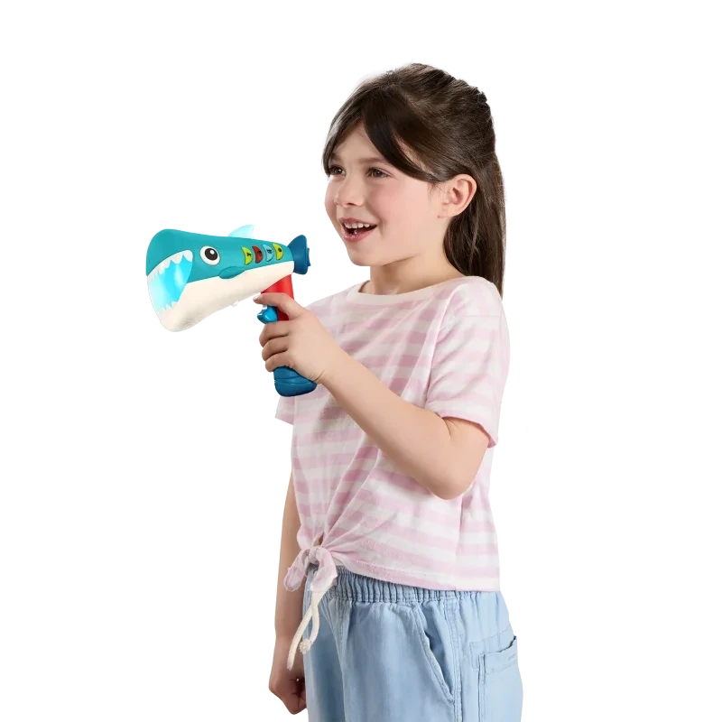 Podczas mówienia w pysku i płetwie rekina zapalają się kolorowe światła LED, które migają w rytm wypowiadanych słów. Efekt sceniczny jest tak widowiskowy, że dzieci nie chcą odkładać megafonu ani na chwilę.