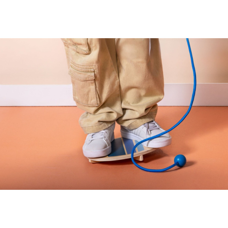 W zestawie znajdują się dwie balansujące podstawy wykonane z wysokiej jakości drewna oraz lina.