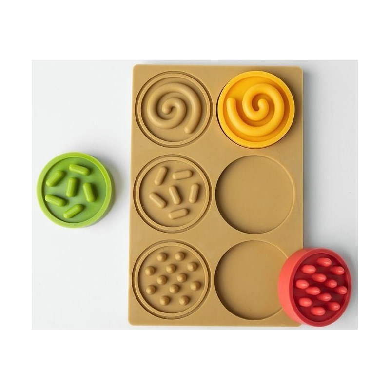 Zestaw zawiera sensoryczną deskę oraz 3 oddzielnych kółeczek sensorycznych.