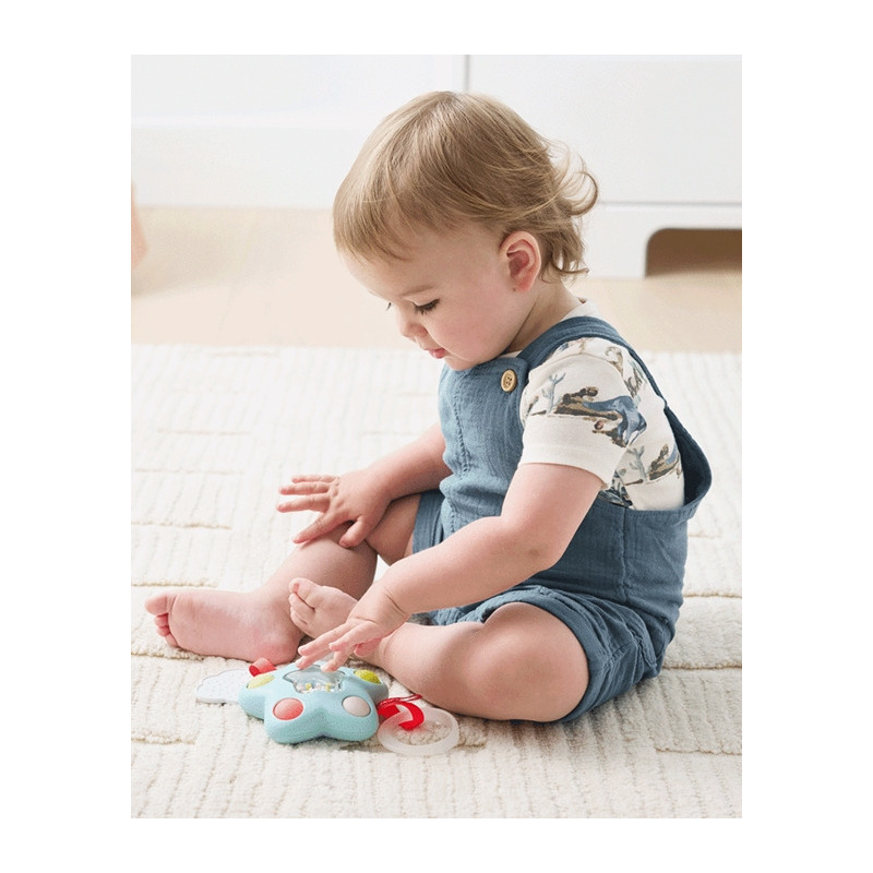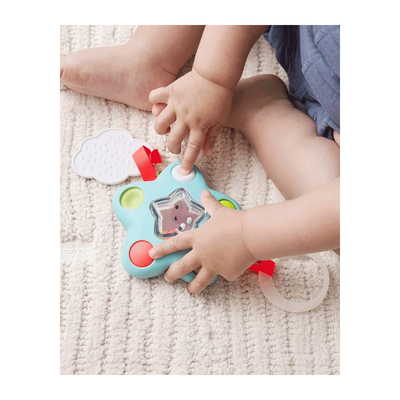 Ta urocza gwiazdka posiada przyciski typu pop-it, grzechotkę, wystające metki oraz gryzak.