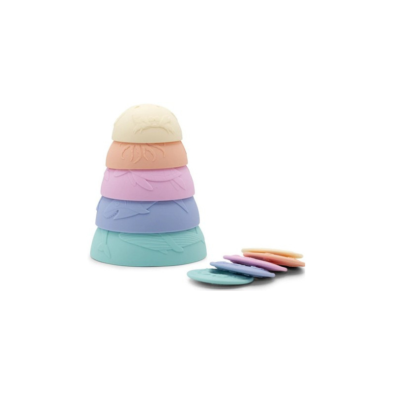 SILIKONOWE KUBECZKI miseczki do układania i do wody z tonącymi dyskami Cups Rainbow Pastel 10 el. Jellystone 9m+