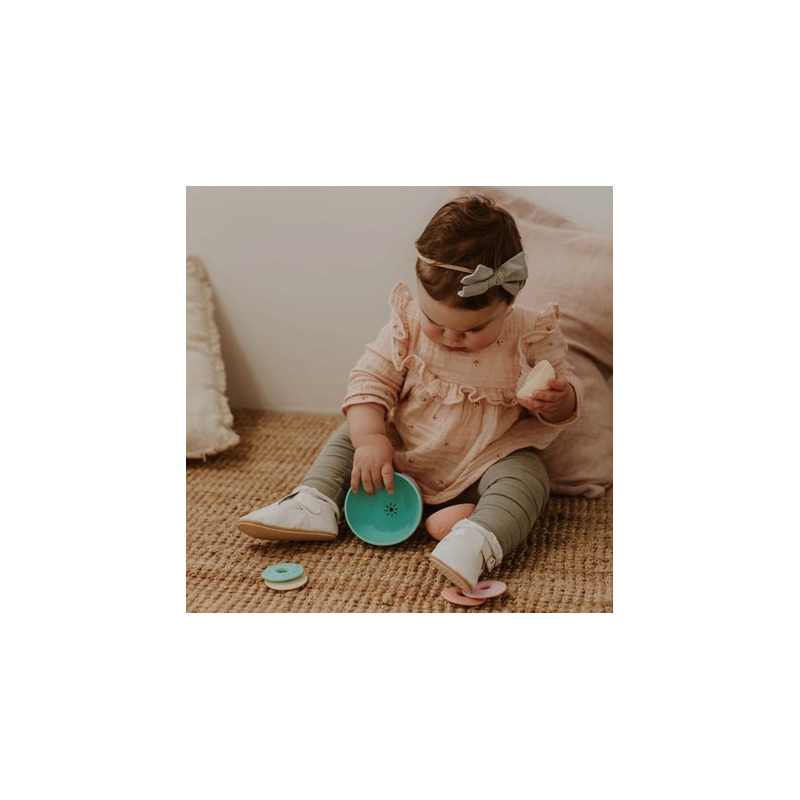 Zabawka wspiera rozwój małej motoryki, koordynacji ręka–oko oraz wyobraźni. Różnorodne faktury i miękki silikon zachęcają do eksploracji dotykowej, a bezpieczny materiał (bez BPA, ftalanów i PVC) sprawia, że kubeczki są idealne także do zabawy dla najmłodszych. Lekka, trwała i łatwa do czyszczenia forma sprawia, że zestaw sprawdzi się zarówno w domu, jak i podczas zabawy na świeżym powietrzu, na plaży czy w kąpieli.