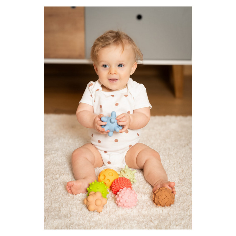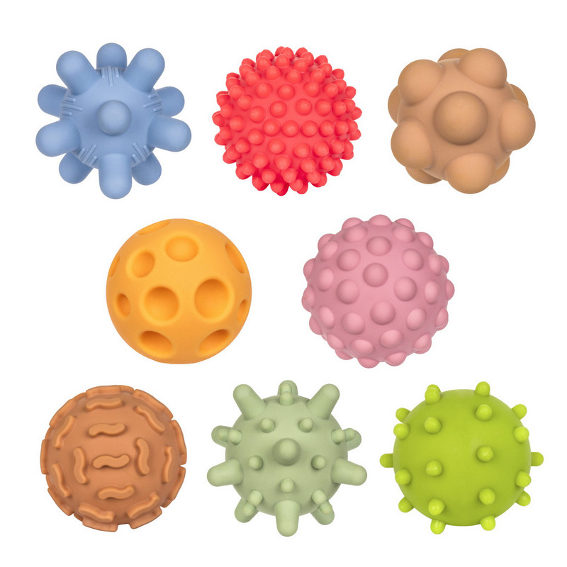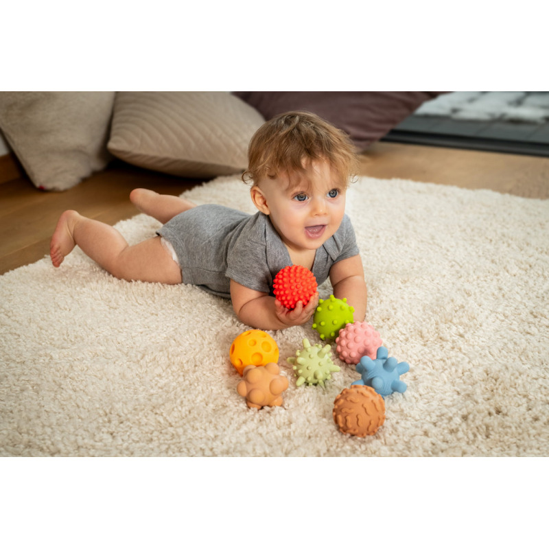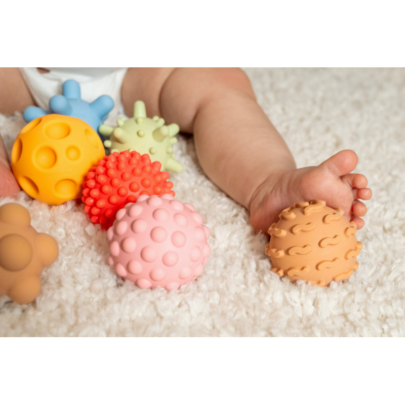 Każda piłeczka posiada inną fakturę, która dostarcza różnych wrażeń czuciowych.
